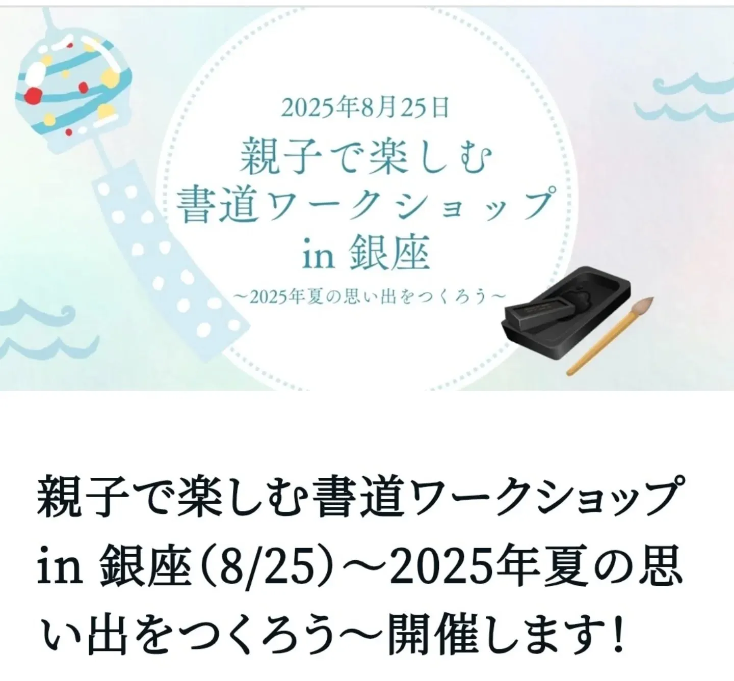 親子で楽しむ書道ワークショップ in 銀座 明日(8/25)〜2025年夏の思い出をつくろう〜開催します‼️