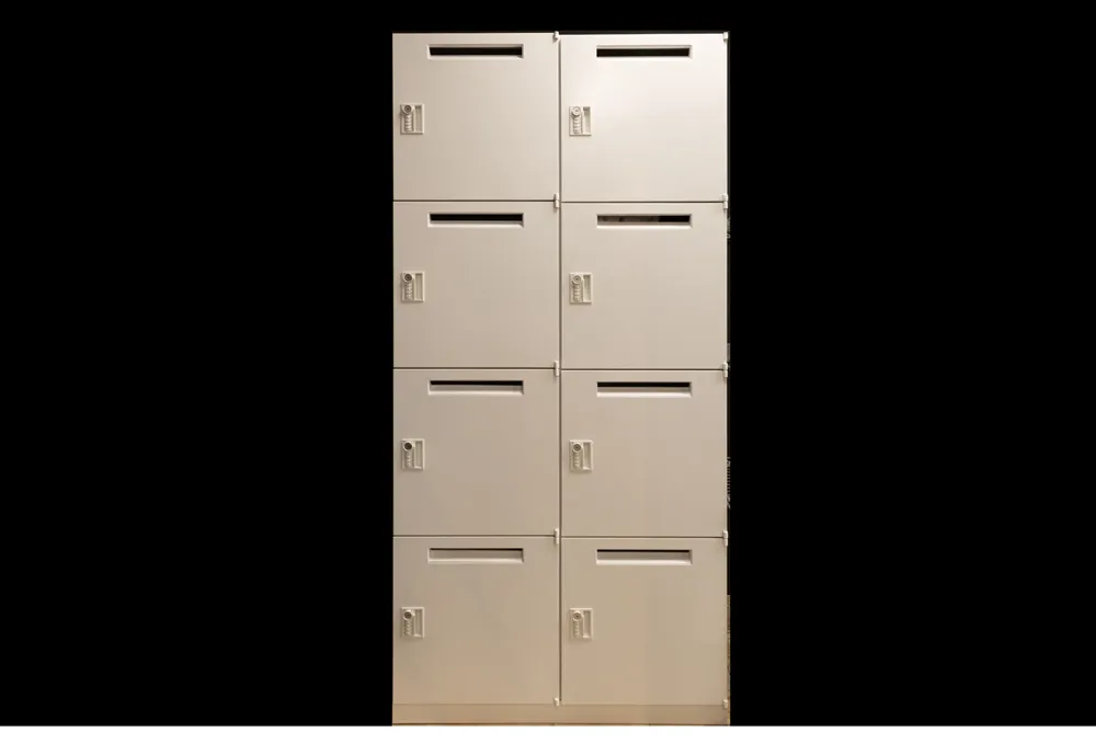 A3サイズのポスターチラシを2面に貼ることが出来、夜はライト付にして、1階外に目標として置くことが出来ます。更衣室内に収納。