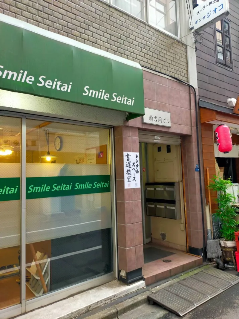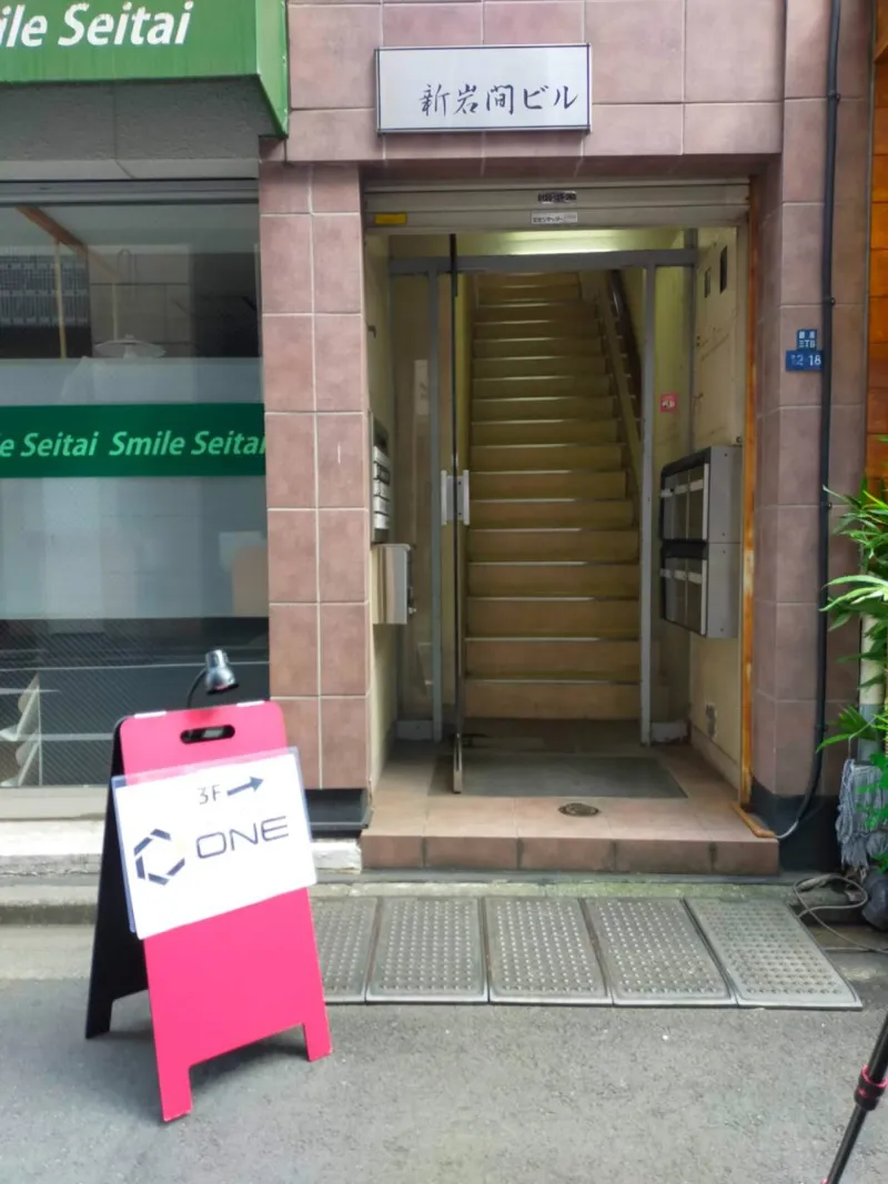 ①「新岩間ビル」の看板をご確認の上、ご入室下さい。隣に「岩間ビル」があり、作りも似ている為、間違えやすくなっております。